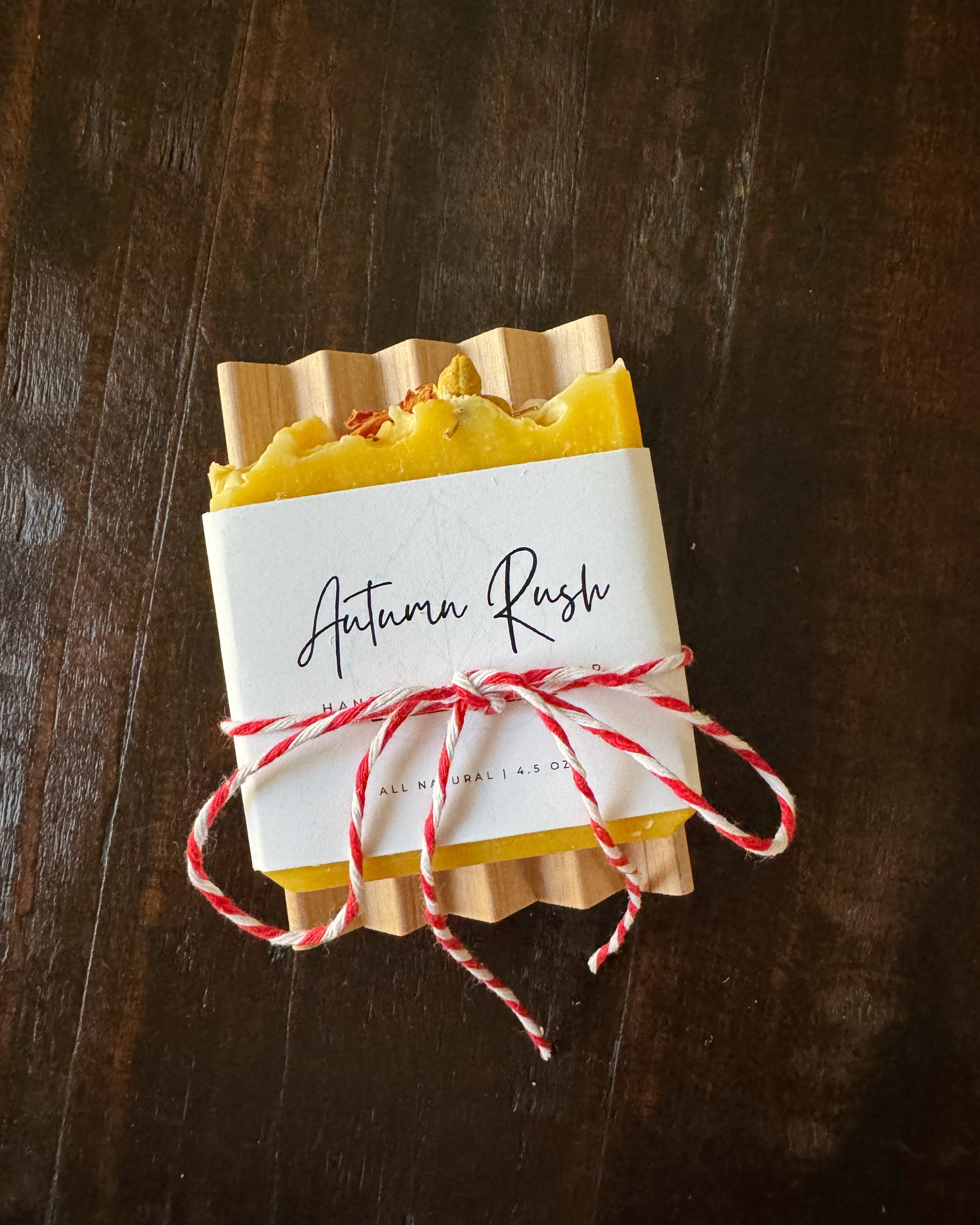 Comforting, golden, and handcrafted — Autumn Rush is your fall-season ritual in bar form. This creamy, autumn-inspired blend of sweet orange and clove bud essential oils brings the warm, cozy feeling of crisp mornings, turning leaves, and a kitchen filled with fall spices. It’s uplifting, soothing, and perfect for easing into the day or unwinding as the sun sets.