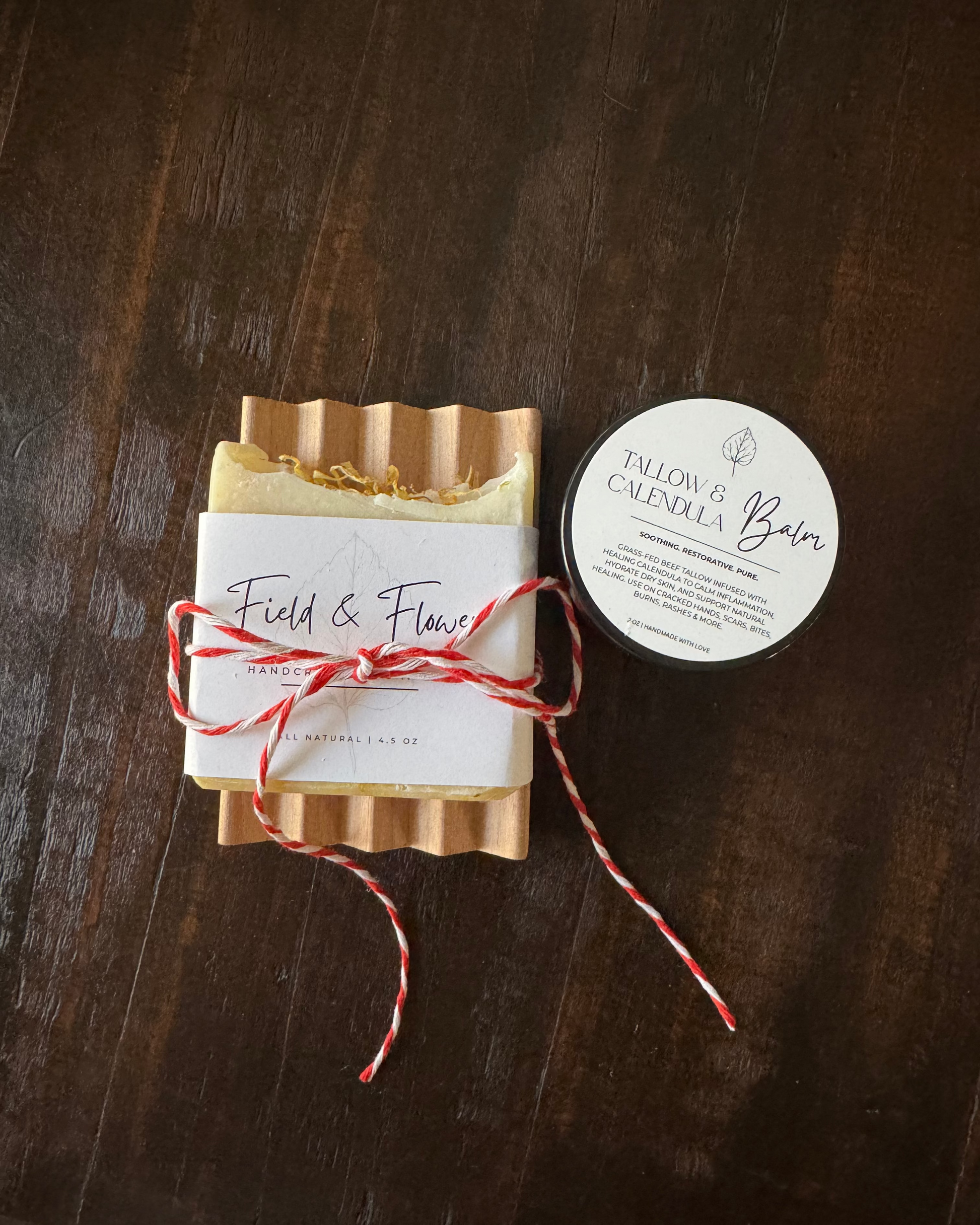 Field & Flower Soap + Tallow & Calendula Balm — Gift-Wrapped Soothing & Restorative Set