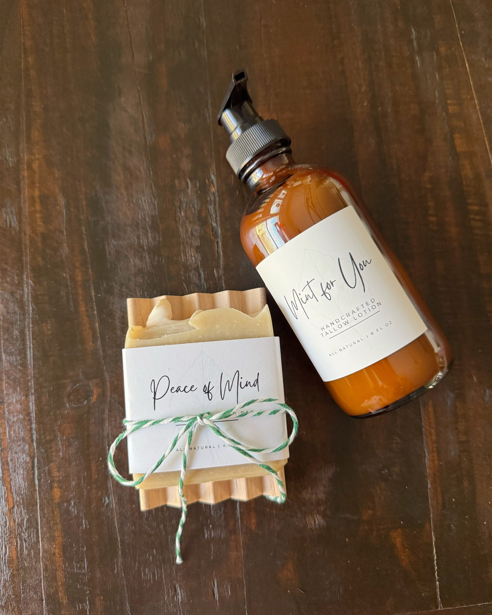 Peace of Mind Soap + Mint For You Tallow Lotion — Gift-Wrapped Holiday Refresh Set