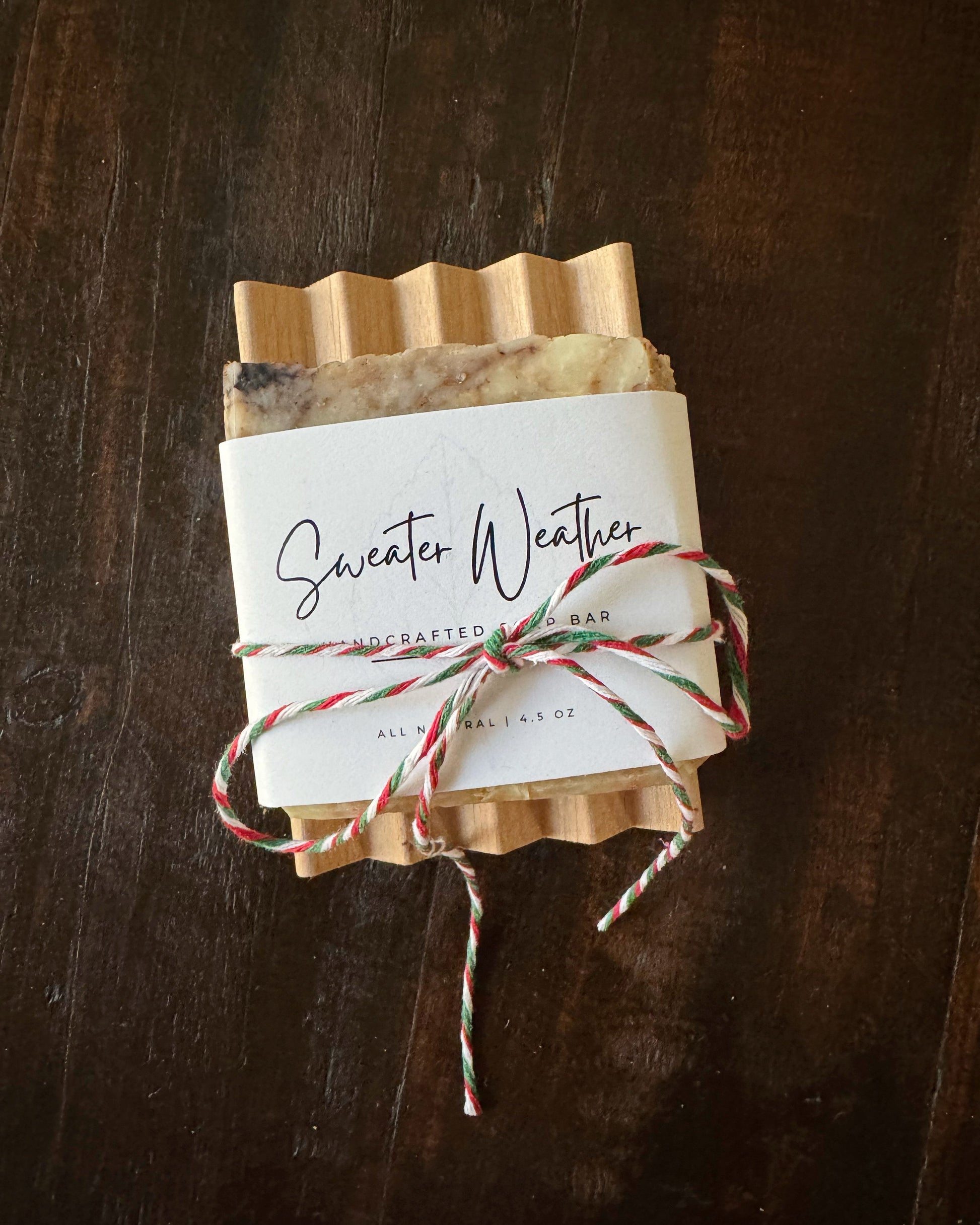 Warmth, comfort, and handcrafted charm — Sweater Weather is your cozy-season essential in bar form. This inviting blend of clove, cinnamon, sweet orange, and vanilla essential oils wraps the senses in the same comforting aroma as a holiday simmer pot on the stove. It’s soothing, nostalgic, and perfect for crisp mornings or slow, relaxing evenings.